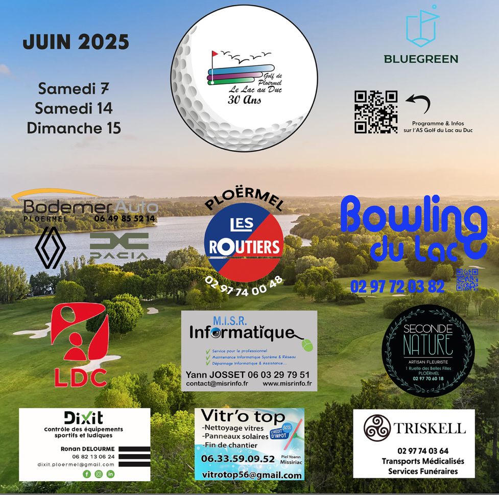Ci-dessous l'affiche officielle des 30 ans du golf de Ploërmel qui seront célébrés ce mois-ci.